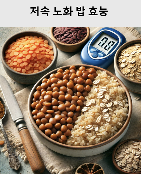 저속 노화 밥은 렌틸 콩, 귀리, 현미 등의 건강한 재료로 만들어집니다. 이 밥은 혈당 상승을 억제하고 당뇨 합병증 예방에 도움이 됩니다.