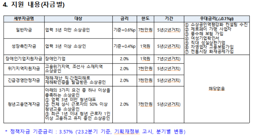 - 대출한도 : 업체 당 최고 7천만원 이내